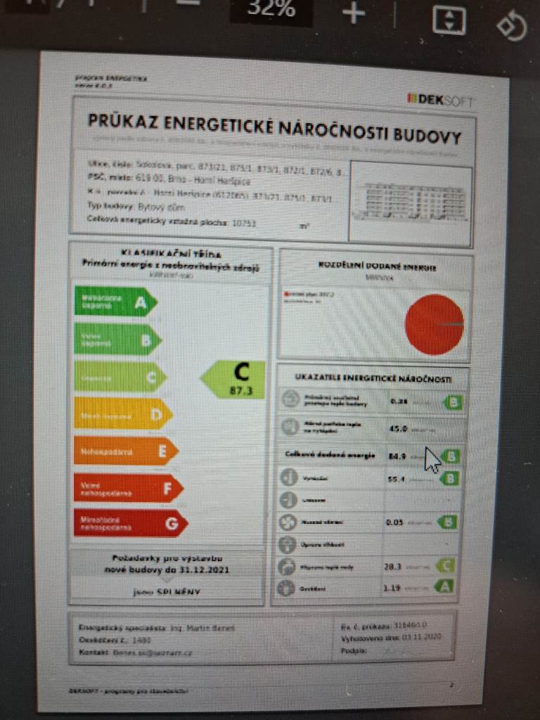 | Okres | Brno-město | Ukazatel ENB | 28.3 kWh/m2 za rok |